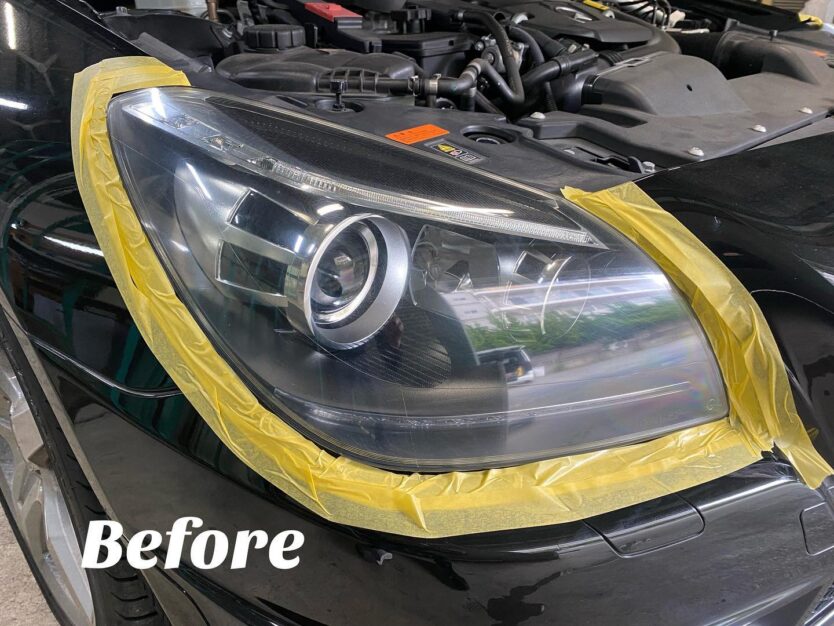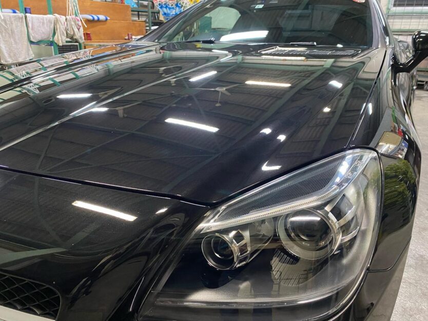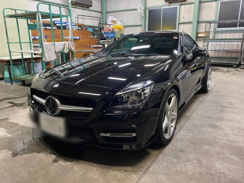 SLK200のガラスコーティングとウィンドウコーティングとヘッドライトコーティングの施工をさせて頂きました。