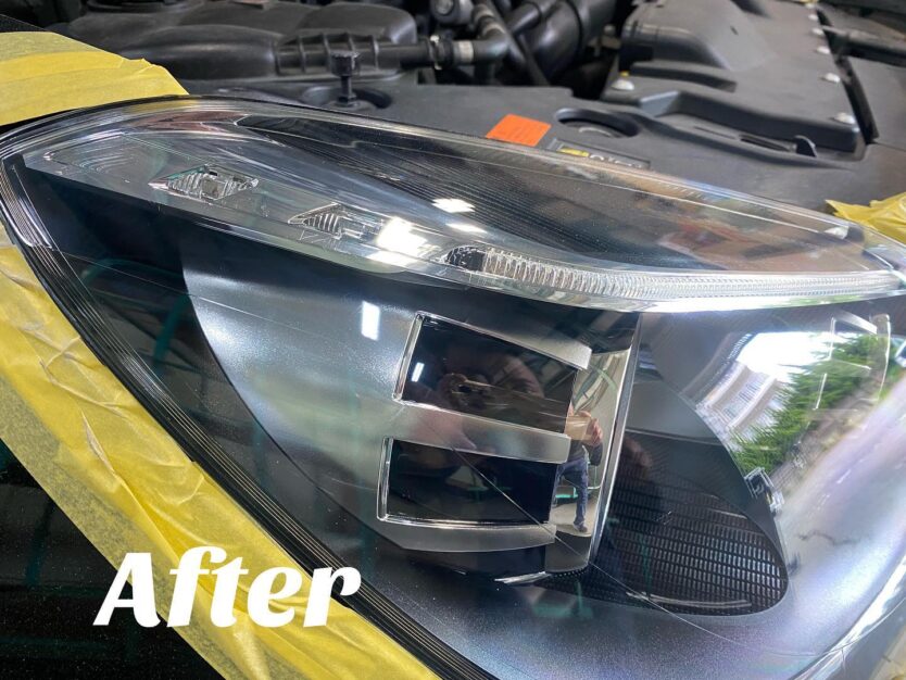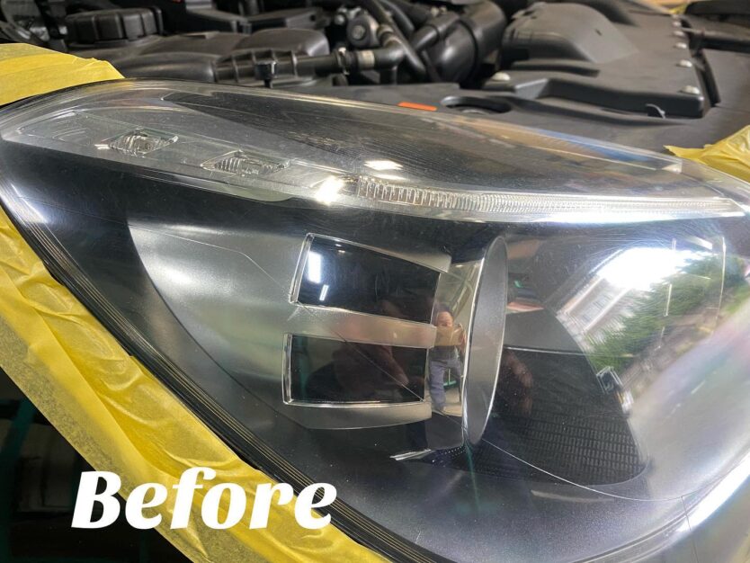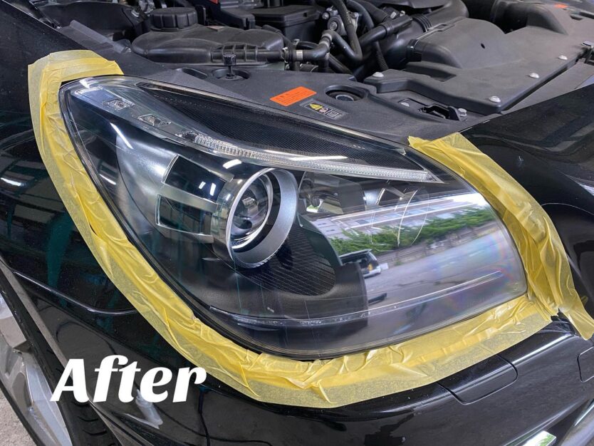 ヘッドライトもくすんでいましたがしっかりと下地作りをしてからコーティングを施工致します。