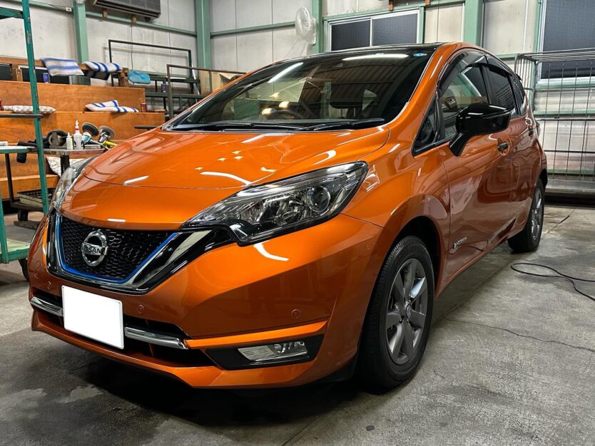 ノートのガラスコーティングとフロントガラスの断熱フィルムのご依頼を頂きました。