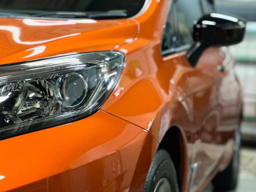 ヘッドライトもくすんでいましたがしっかりと下地作りをしてからコーティングを施工致します。